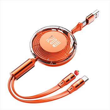 도매 120W USB A/C 충전기 2-in-1 디자인 타입 C 포트 고속 충전 케이블 휴대 전화 1.2m 개폐식 TPE 재킷 금속